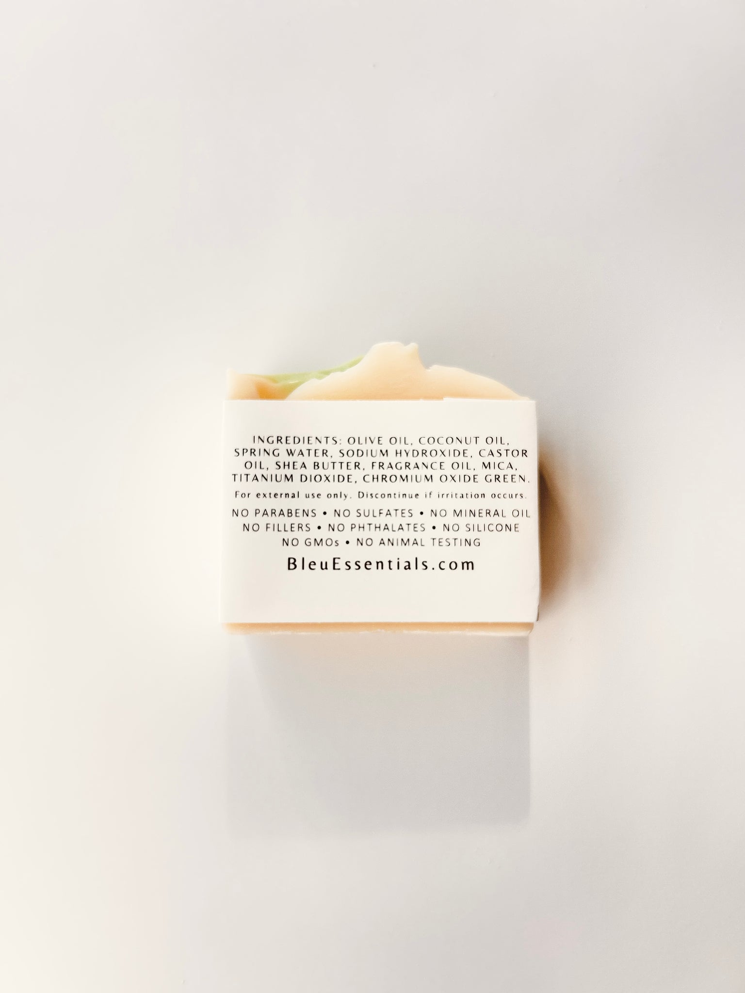 Olive Oil, Coconut Oil, Spring Water, Sodium Hydroxide, Shea Butter, Castor Oil, Fragrance Oil, Non-toxic and Metal Free Mineral Colorants: Mica, Titanium Dioxide, Iron Oxide.