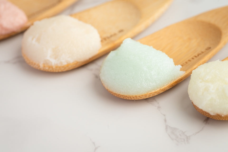 Exfoliate gently and reveal radiant skin with our luxurious body scrubs. Scents include Flirty Jasmine, Rich Ginger & White Tea, Tarty Lemon Grass, and Fresh Cucumber Melon.