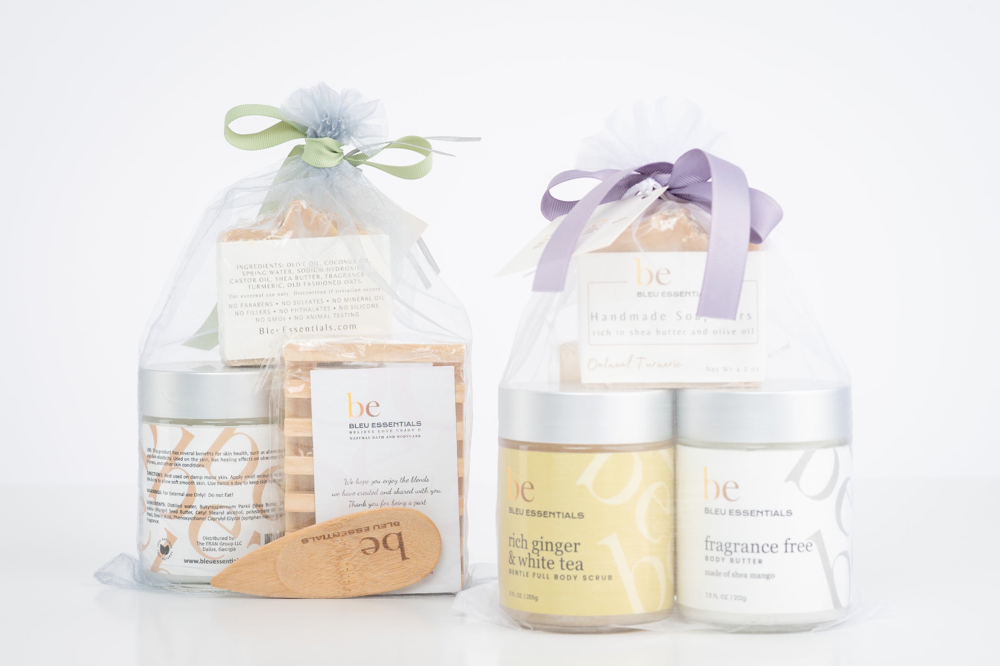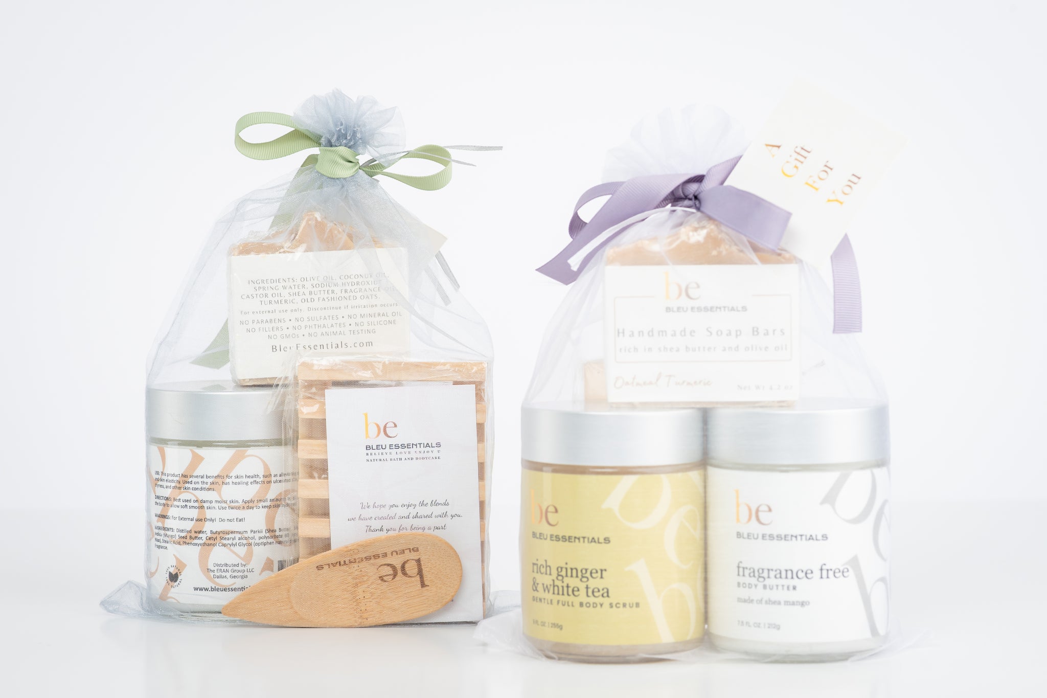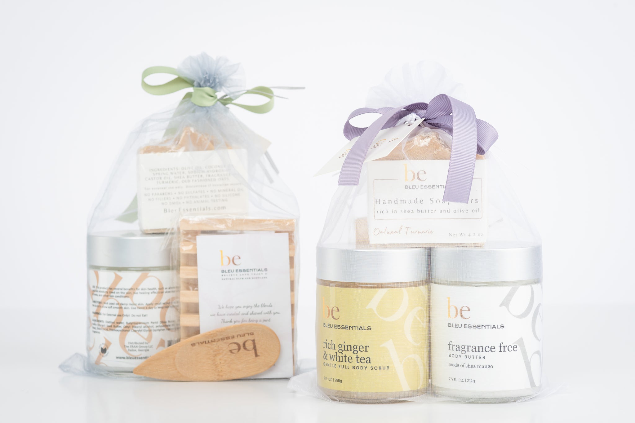The Luxe Self-Care Ritual Set is thoughtfully curated with Bleu Essentials’ most loved products — layering moisture, gentle exfoliation, aromatherapy, and uplifting affirmation.
